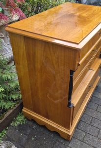Diese besondere Kommode wurde frisch restauriert und gewachst.