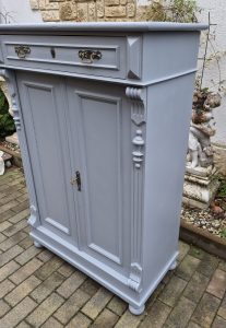 Dieser schöne zeitlose Schrank mit den geringen Maßen ist restauriert und in shabby schwarz gefasst.