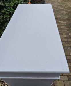 Diese schöne lange Kommode wurde restauriert und in weiß gefasst.