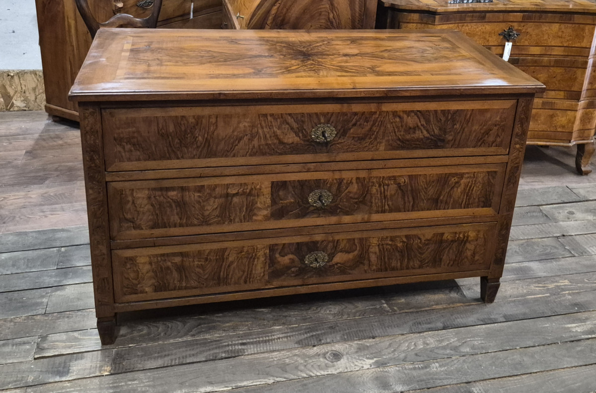 Antike Kommode um 1780 mit verschiedenen Obsthölzern furniert