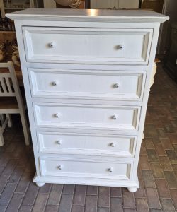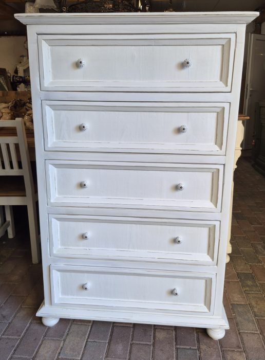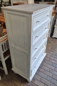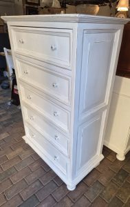 Diese schöne Hochkommode wurde restauriert und in weiß gefasst.