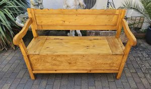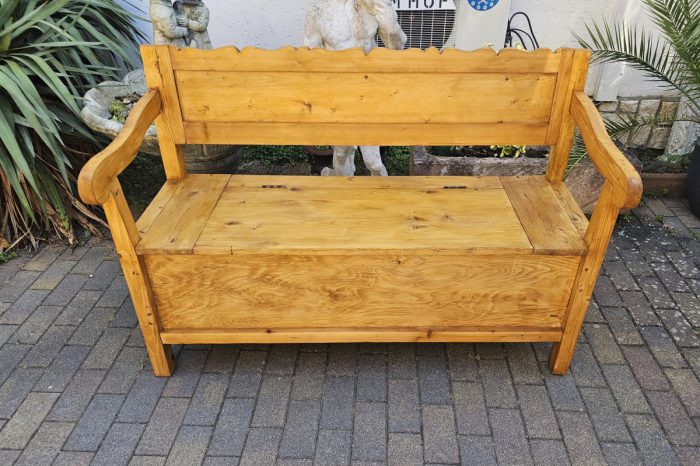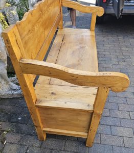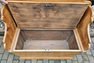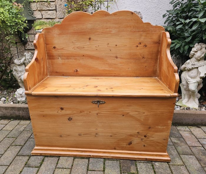 Antike Truhenbank aus Weichholz