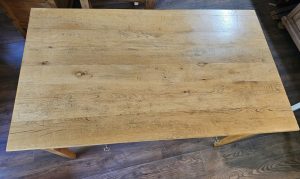 Dieser besondere Tisch wurde aus massivem Altholz neu hergestellt.