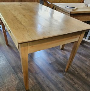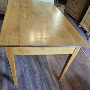 Dieser schöne große Esstisch mit der praktischen Schublade unter der Platte ist ein Unikat und wurde aus massivem Eschenholz neu hergestellt. Er steht auf geraden stabilen Beinen und ist nicht zerlegbar.