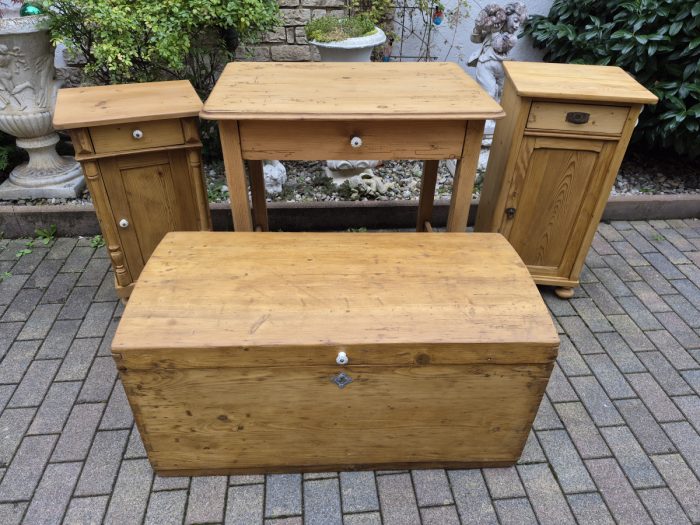 Antike Kleinmöbel aus Weichholz, frisch restauriert und gewachst, sie waren vorsorglich in der Wärmekammer gegen Schädlinge